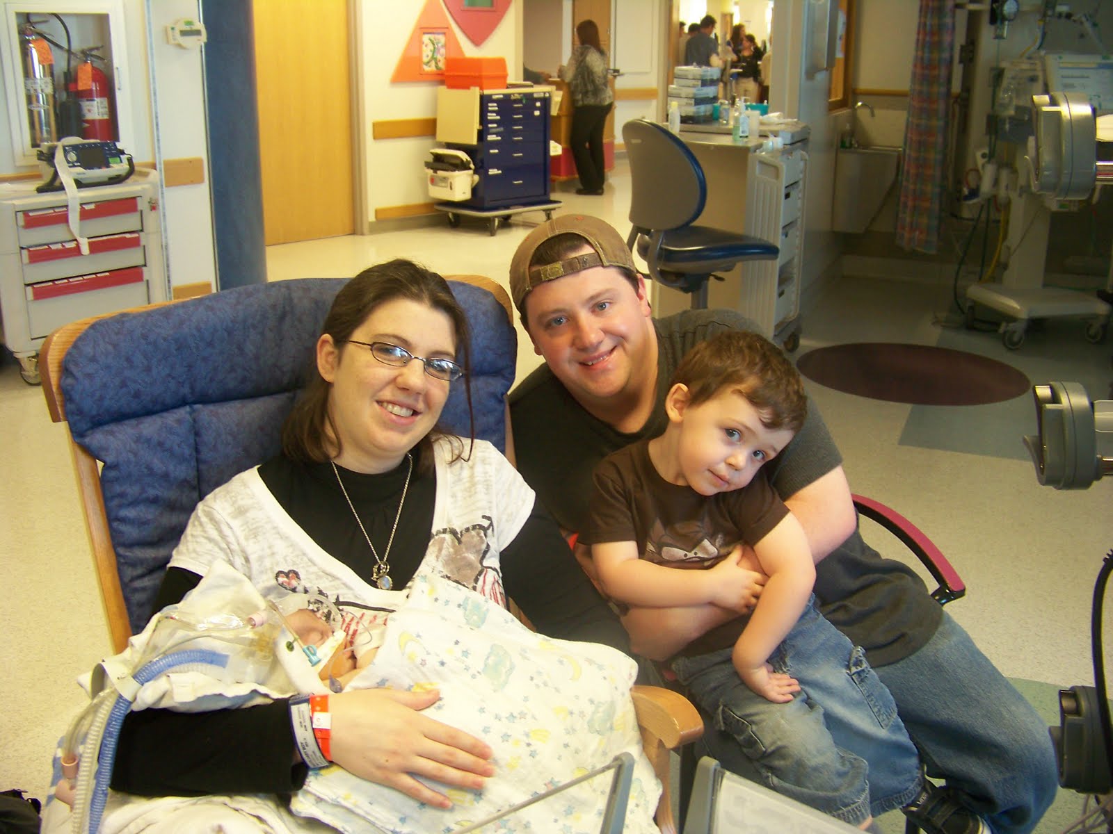Jacob is on bypass and doing well. I thought I would share some pictures of us getting to hold our baby boy for the first time. Aidan met his baby brother this morning too. He was not phased by the machines, he told him he loved him and then wanted to go back to play his computer game lol. Thank you for all of the support and please continue to keep our baby boy in your prayers!